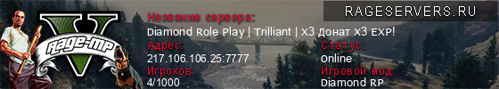 Информация о сервере Diamond Role Play | Trilliant | X3 Донат X3 EXP!