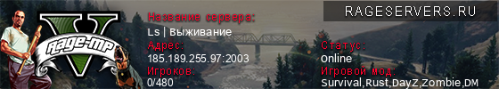 - Игровой мод: Survival,Rust,DayZ,Zombie,DM