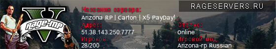 Информация о сервере Arizona RP | Carton | X5 PayDay!