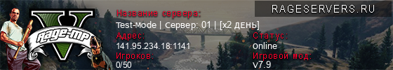 Информация о сервере Test-Mode | Сервер: 01 | [x2 ДЕНЬ]